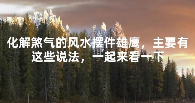风水学在我国已经有几千年的历史了,迄今为止,还受到很多人的关注。日常生活中,人们经常通过风水学来帮助自身提高好运,特别是一些凶恶煞气之类的风水问题,是需要对其做出化解的。那么,化解煞气的风水摆件雄鹰具体都有哪些说法,你了解吗?主要有这些,下面一起来看一下。